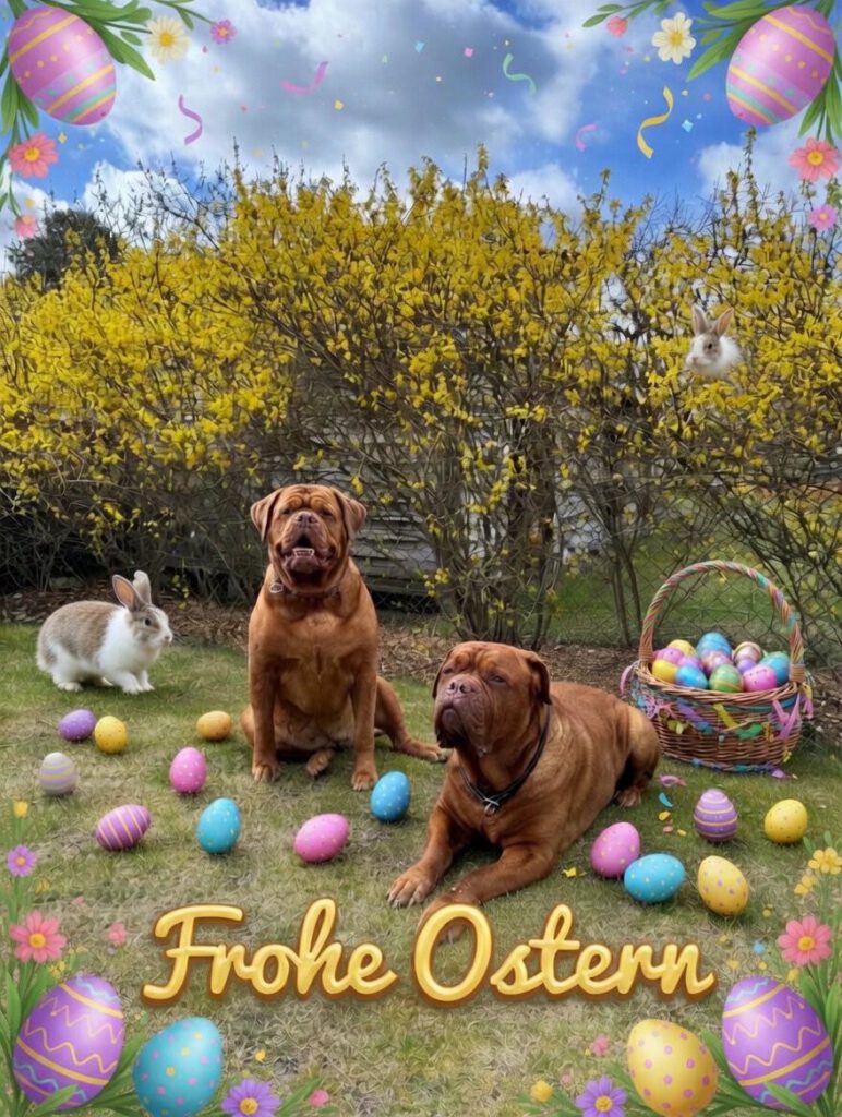 und schwupp schon ist Ostern. Kim und Pommes geht es blendend, wobei Flummi Pommes unsere Kim schon manchmal ganz schön nervt. Aber im Alter von 10 Jahre und 4 Monate braucht man schon etwas mehr Ruhe. Abschließend wünschen wir allen Freunden und Bekannten schöne Feiertage.